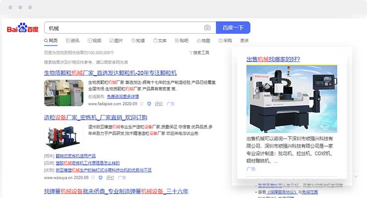 通過通用詞精準匹配,展現在PC網頁右側的圖文品牌展示類推廣產品